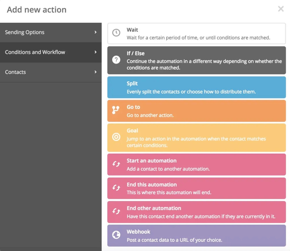 Waar pakketten zoals Mailchimp automations beperken tot het versturen van e-mails, biedt ActiveCampaign de mogelijkheid om ook andere processen te automatiseren, zoals sales of proces gerelateerde zaken te automatiseren.