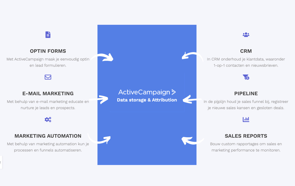 Hieronder zie je hoe het ActiveCampaign ecosysteem dit oplost.