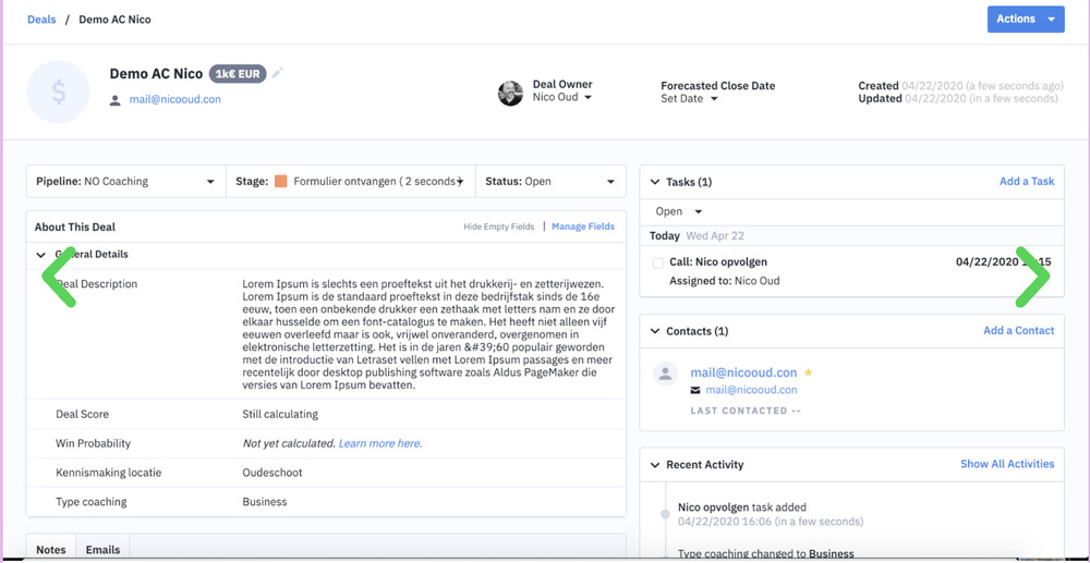Het CRM werkt intuïtief en het kost dan ook weinig moeite om het je eigen te maken. Mede hierom heb ik ActiveCampaign vaak aanbevolen aan grote organisaties die grote groepen mensen met de software wilden laten werken.