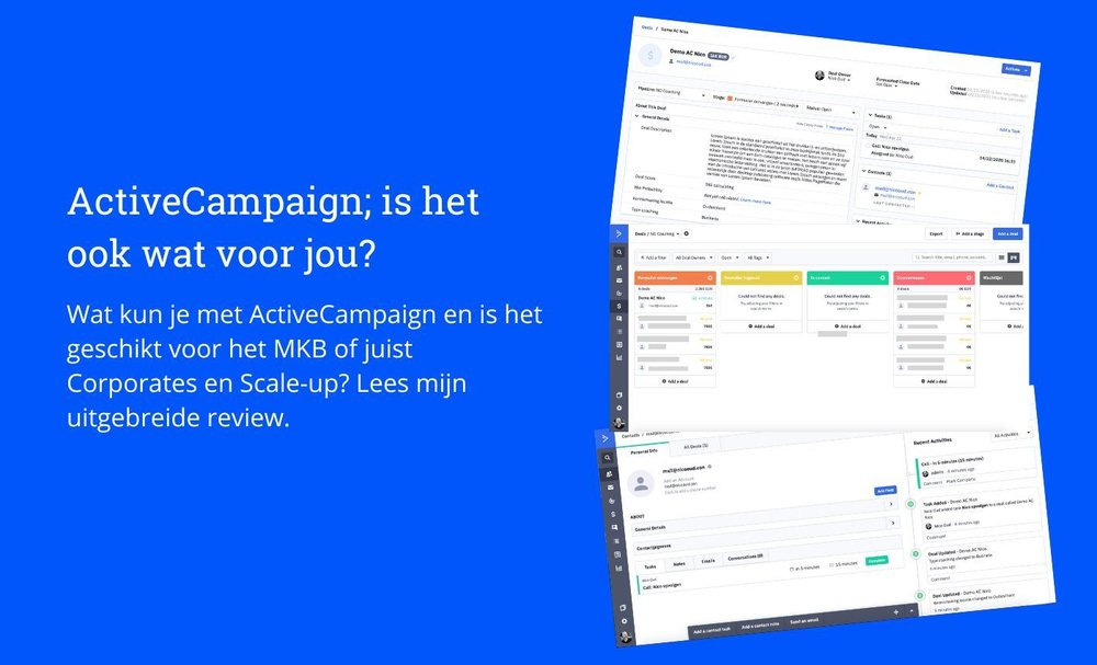 Het CRM van ActiveCampaign heeft de laatste 12 maanden echt een grote stap gemaakt en mag zich nu een volwassen CRM noemen voor het MKB. Het CRM is mooi overzichtelijk en put dus uit dezelfde bron als marketing.