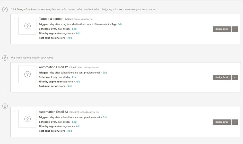 Waar Mailchimp het duidelijk verliest op het gebied van gebruiksvriendelijkheid, en de reden waarom bedrijven massaal op zoek gaan naar een alternatief voor Mailchimp, is het inrichten van een automation.