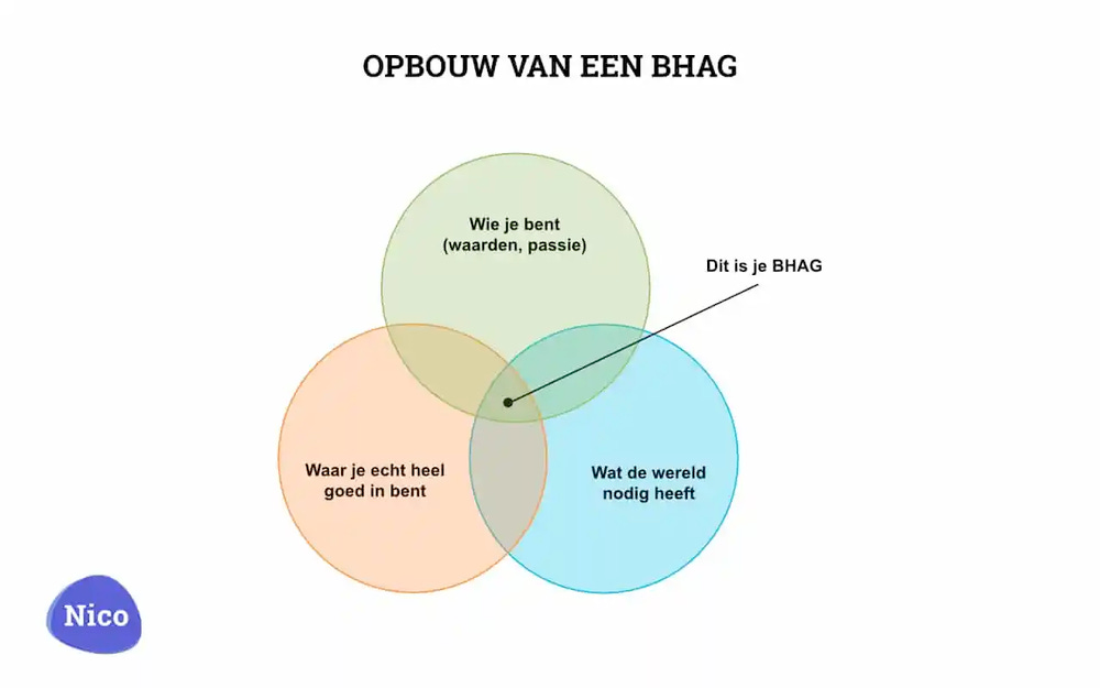 De best practices kom ik zo op terug, maar laten we eerst even kijken naar de kern van een goede BHAG. Hieronder zie je wat de basisingrediënten zijn van een goede BHAG.