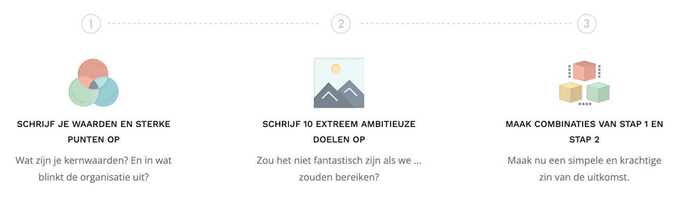Een goede BHAG is eenvoudig te formuleren in drie stappen. Het is wel belangrijk