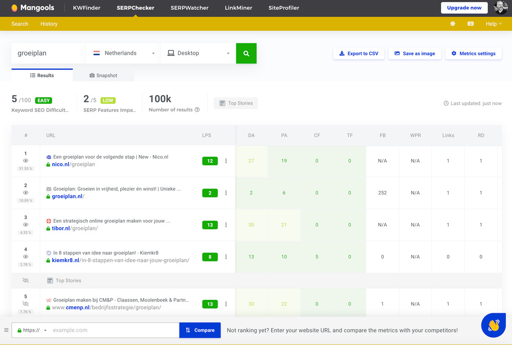 Nou... je krijgt direct een goed beeld van wat je kunt met KWFinder en je komt direct een paar belangrijke zaken te weten. KWFinder is namelijk niet geschikt voor iedereen.