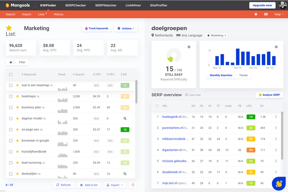KWFinder is vooral geschikt voor mensen die zelf een website in beheer hebben of kleine agencies die niet teveel geld willen uitgeven aan hun SEO software.