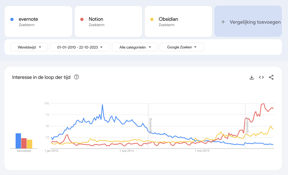 Maar voordat ik mijn lijstje met de beste note taking tools met je ga delen, wil ik een beeld geven van hoe de scene er uitziet. En met name welke note taking tools het grootste marktaandeel hebben. Dit betekent dus niet dat dit mijn favorieten zijn!
