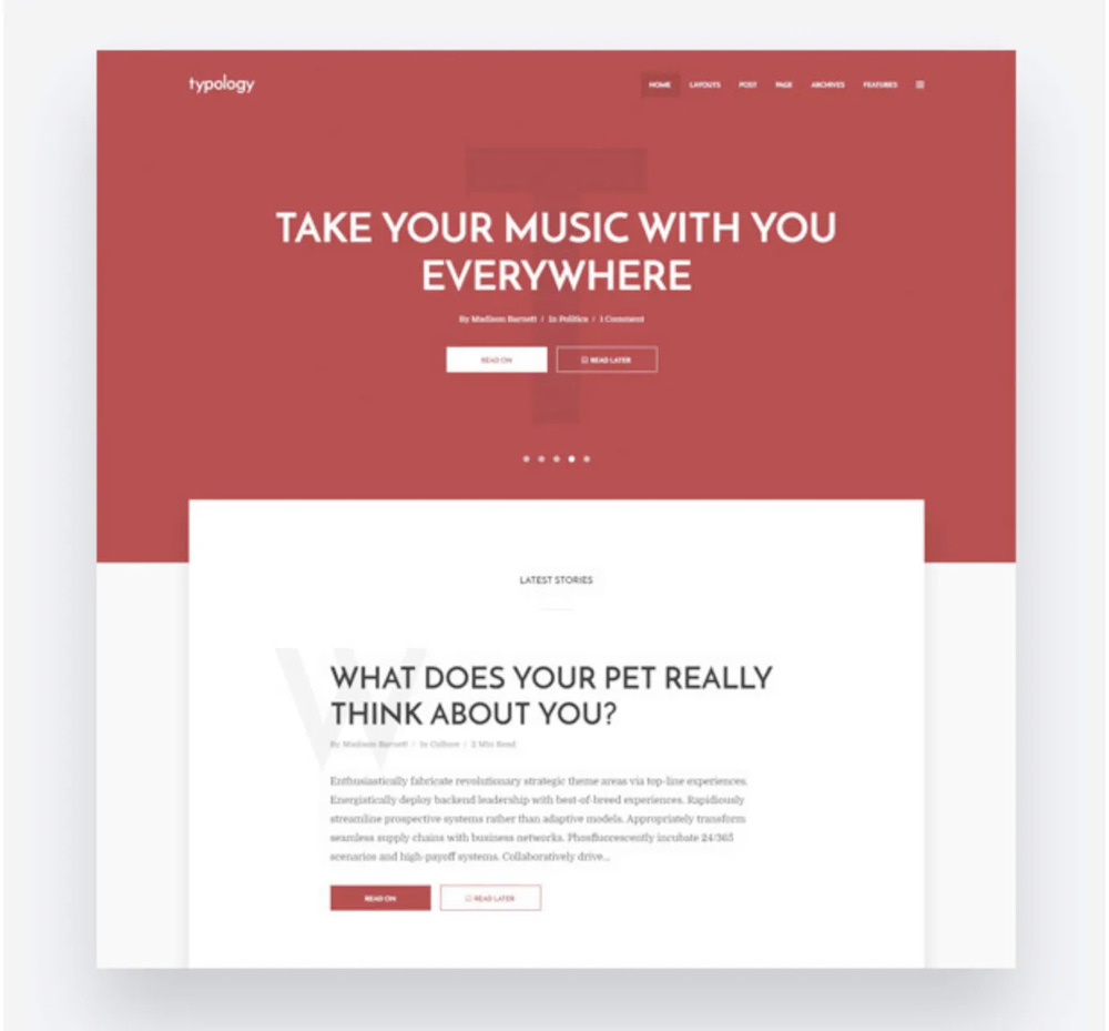 Een mooi clean Theme voor mensen die willen bloggen en geen zin hebben om bij ieder blog een afbeelding te zoeken is Typology de perfecte Theme.